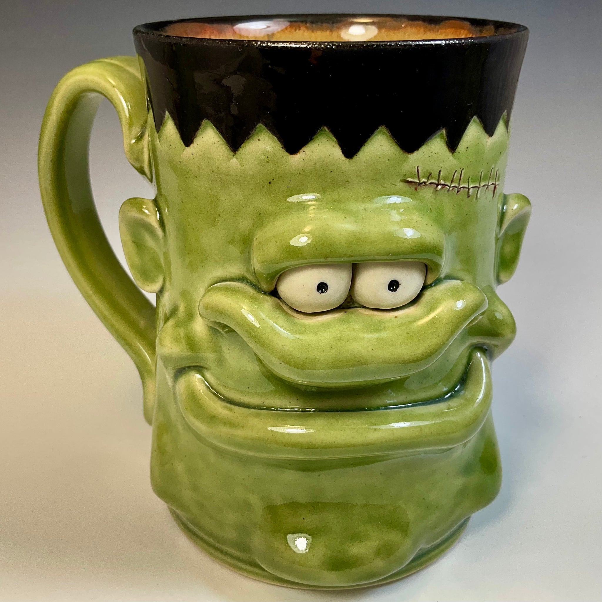 One-of-a-kind FaceMug by Rich Holt. These block headed mugs hold between 16-20 oz of your favorite eye opening beverage or hoppy brew.