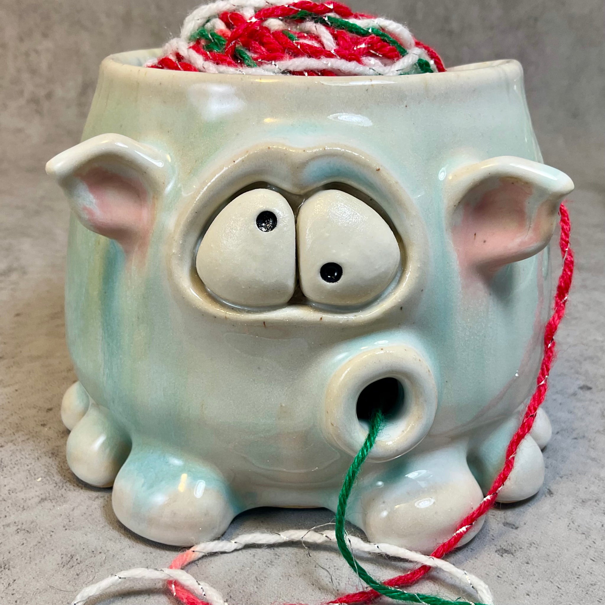 Yarn Yeti are a careful design to assist your fiber arts endeavors. Keep your yarn carefully corralled and protected from your kitties and dust bunnies. There is a precise spiral hook to keep your strand in place as well as peripheral holes for color work. It's weighty and substantial with the intent for sturdiness.
